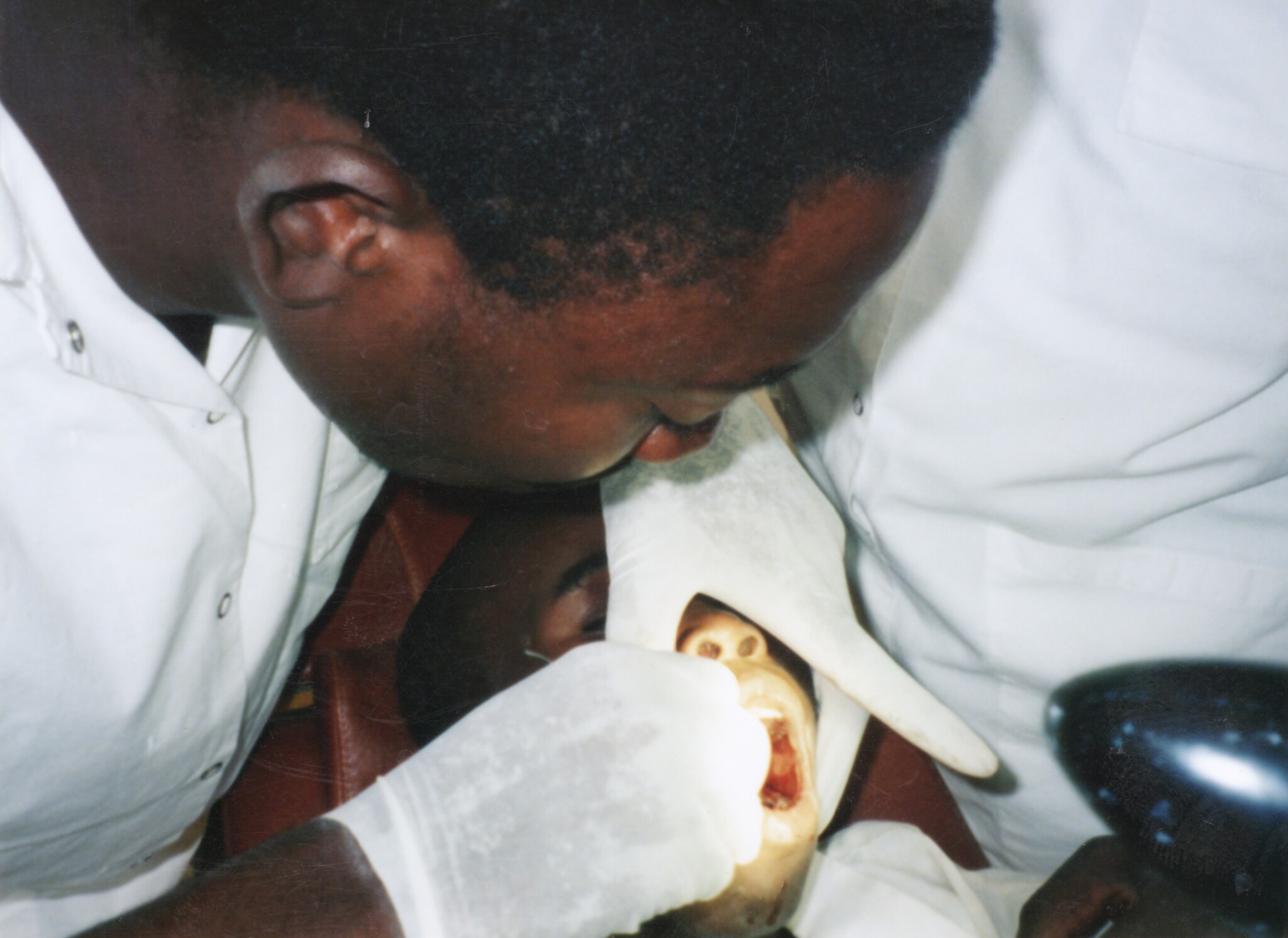 Dental student performs an extraction.