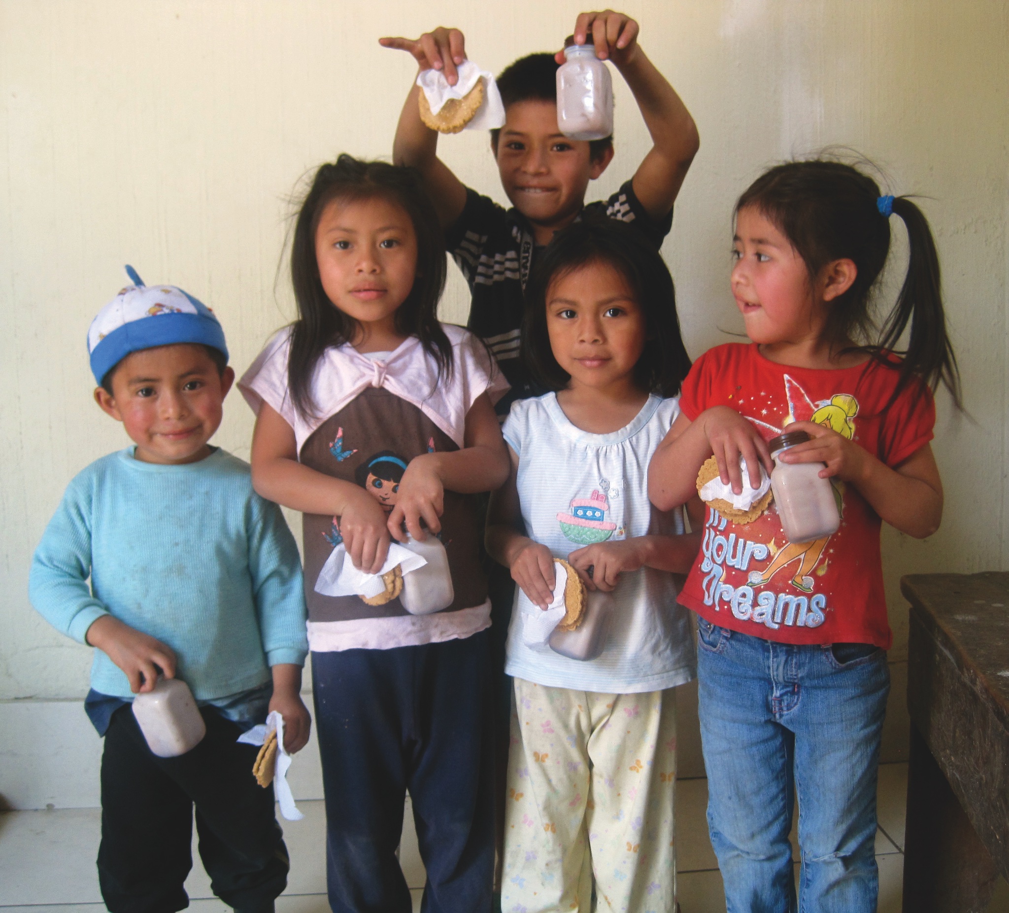 Some of the 350 children living in the settlements around the entrance to Guatemala City waste dump who get high protein soymilk and fortified cookies.